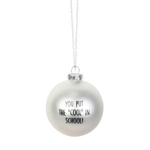 Our Name is Mud creates fun, funky, and functional drinkware and home decor that inspires, entertains, and expresses your individuality. This line of unique giftware features timeless, funny, and feel good sentiments that will make anyone smile. Our Name is Mud offer products for a wide array of occasions and recipients. From pet lovers to new parents to birthdays to retirement, high-quality stoneware products make the perfect, affordable gifts for any personality or event. This glass ornament is detailed with glitter and comes with giftable packaging adorned with a ribbon. It make a perfect holiday gift for your favorite teacher!