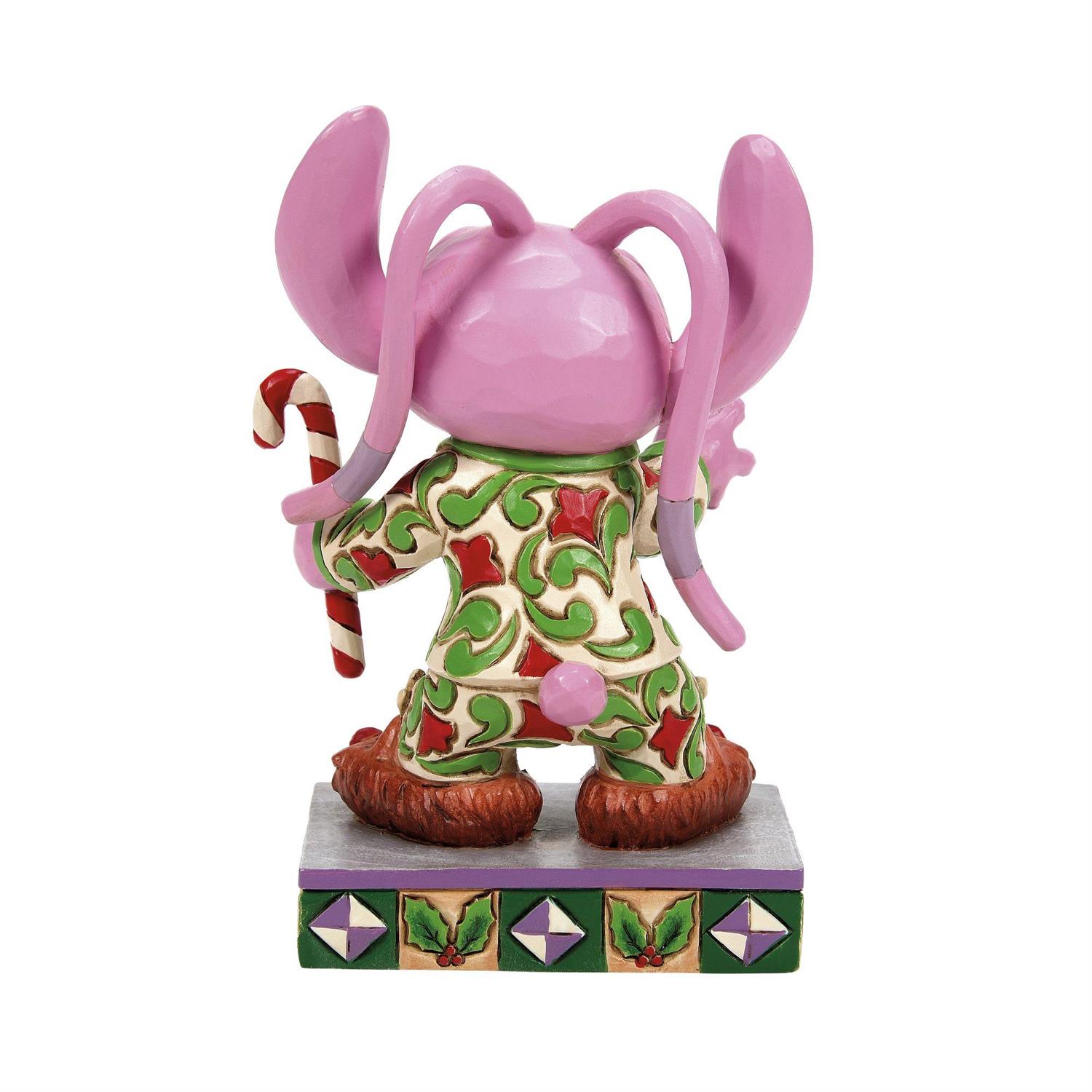 This sweet design by Jim Shore features Angel in festive holiday sleepwear. The pink alien wears rosemale red and green pajamas and reindeer slippers as she holds a candy cane with a smile. Celebrate the magic of the holiday season with Disney!