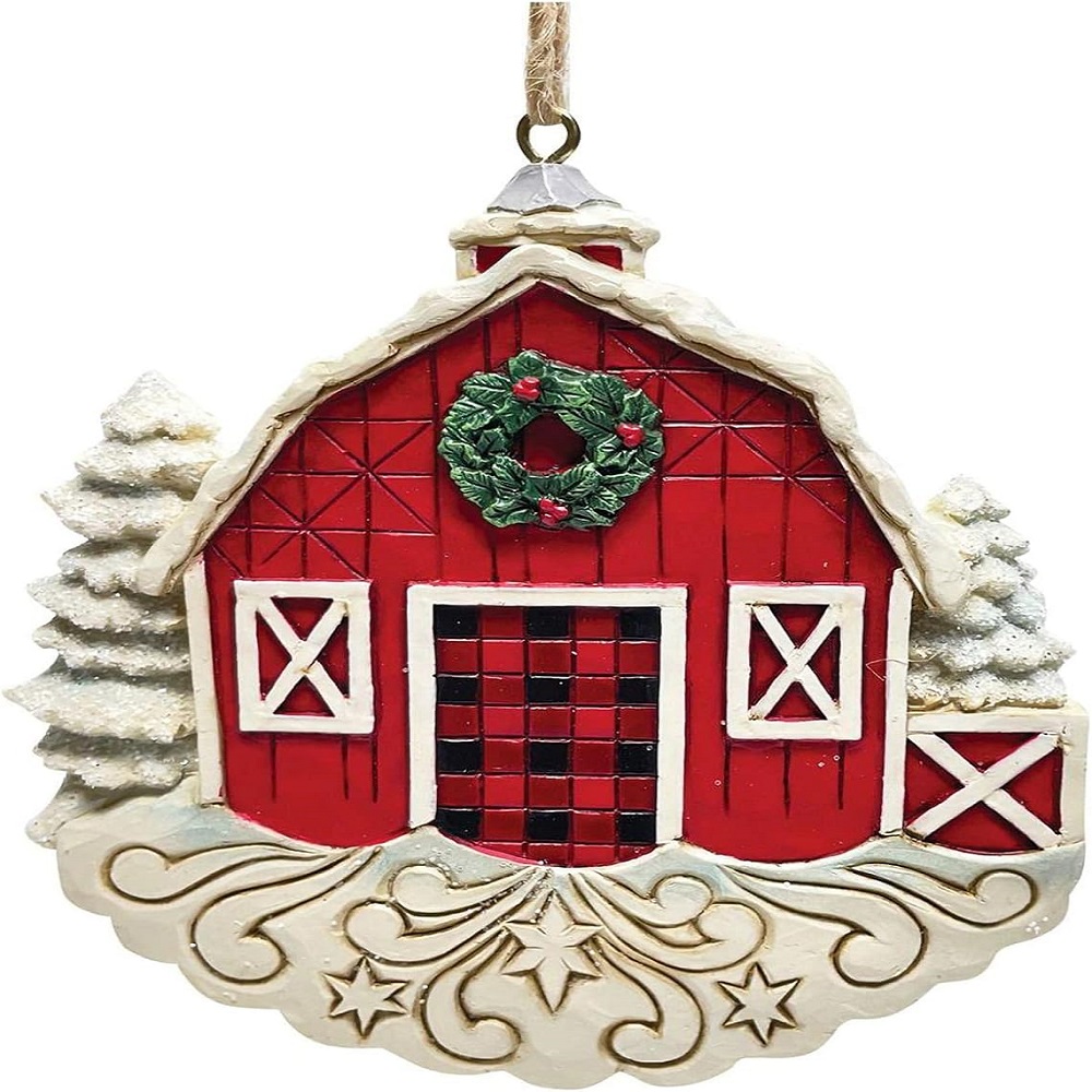 - This hand designed ornament is as simple as it is sweet. Christmas time invites us to forget the daily humdrum and refocus on the important things in life: family and togetherness. This tender Jim Shore scene of a red barn charms in the winter calm.