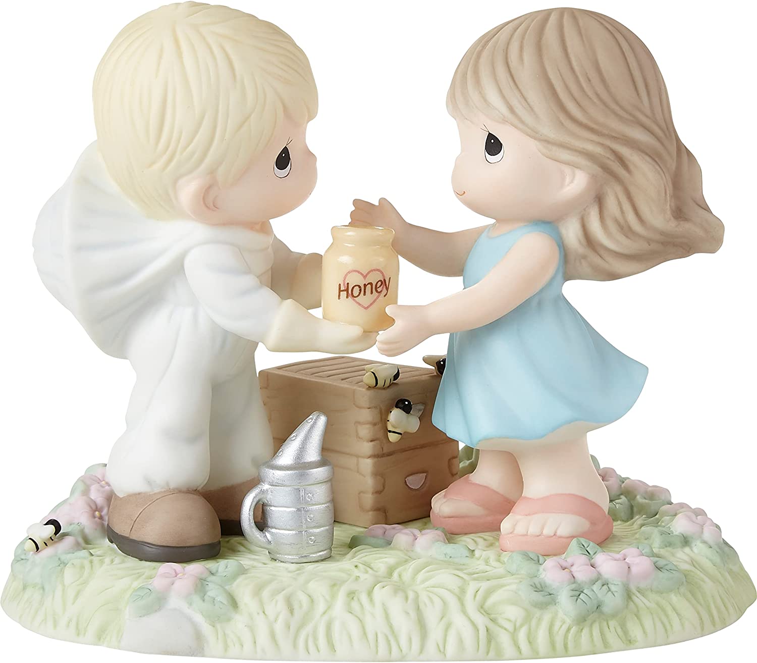There are no lengths this beekeeper won’t go to treat his honey to something special. A few friendly honeybees hang around to see what all the buzz is about. He in his beekeeper suit and she in a pretty summer dress, share a touching moment at an apiary. Give this sweet figurine to your spouse or significant other for birthdays, anniversaries, or other romantic occasions. It also makes a great wedding or anniversary gift for a special couple. Measuring approximately 5.5”H, this figurine is meticulously sculpted of bisque porcelain and is expertly hand-painted.
