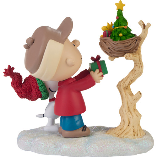 - Fans of Charlie Brown, Snoopy, and Peanuts collectible gifts, will treasure this touching figurine. Give it as a thoughtful Christmas gift, winter birthday present, or for any special occasion.